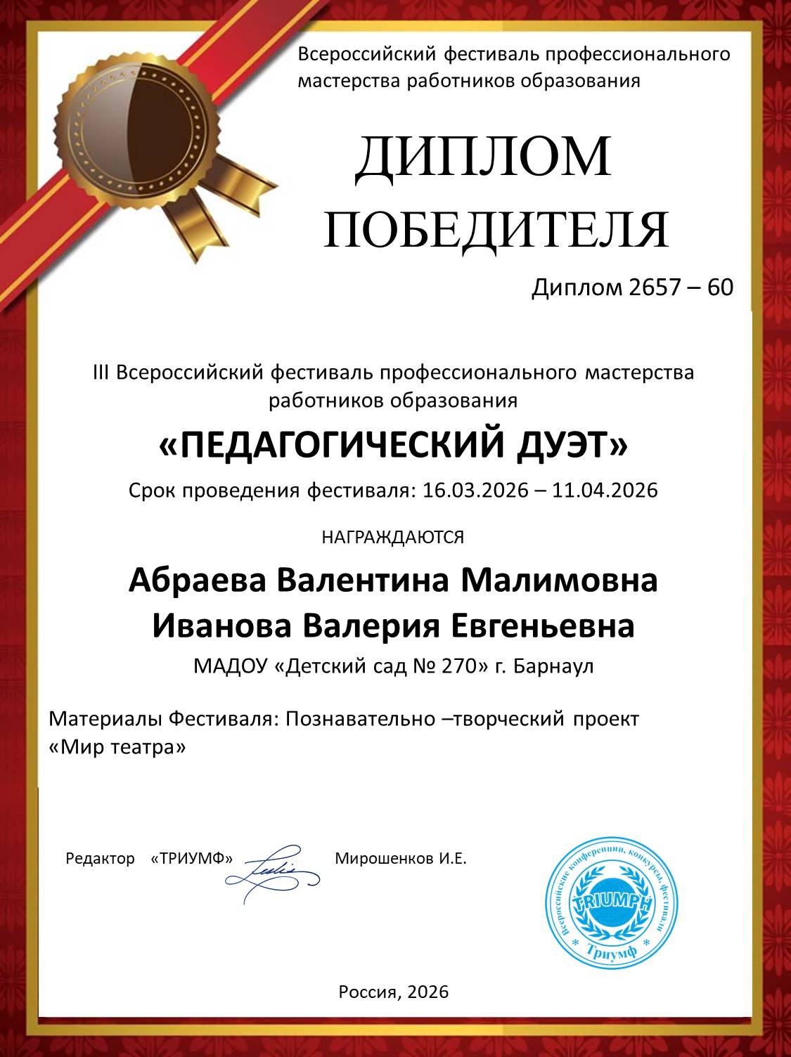 Муниципальное автономное дошкольное образовательное учреждение «Детский сад № 270»